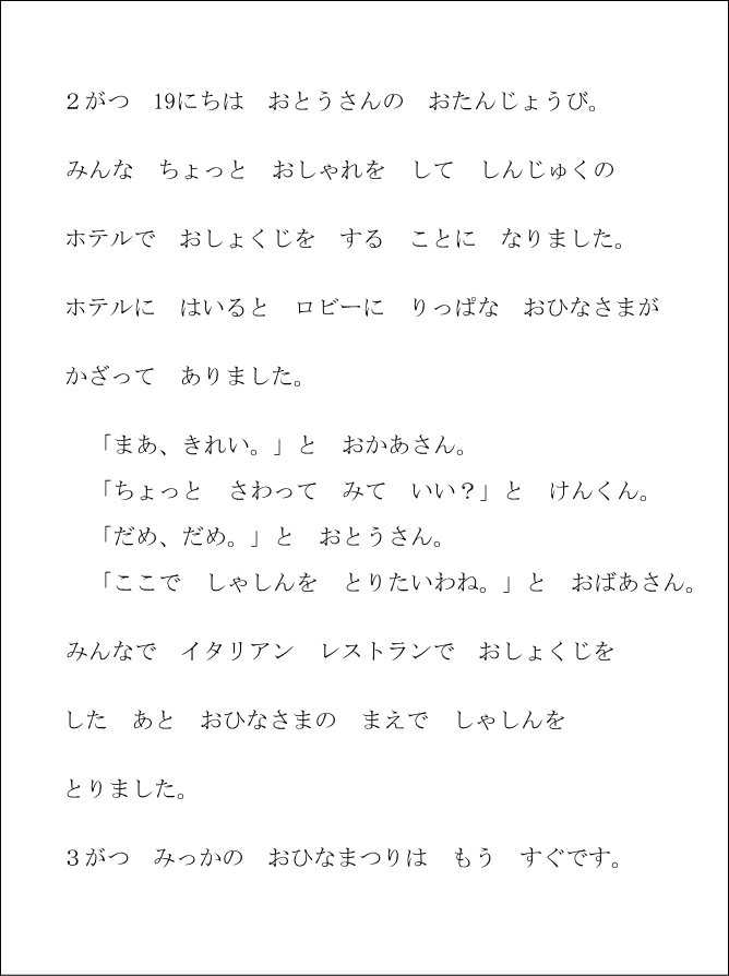 おとうさんのおたんじょうびへ お話コーナーメニューへ ひろこさんとけいたいへ